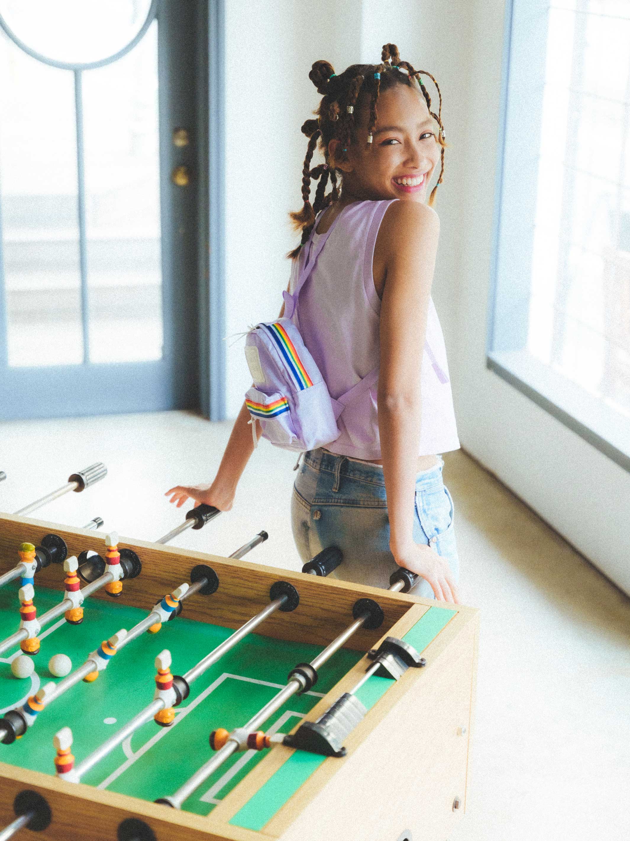 今回はレインボーのテープが可愛らしいアクセントになったバックパック。